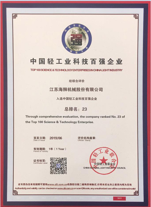 會議宣讀了中國輕工業百強企業評價公告,同時為中國輕工業百強企業頒發牌證,江蘇海獅機械股份有限公司作為洗滌行業領先企業,榮獲了“中國輕工業裝備制造行業三十強企業”、“中國輕工業科技百強企業”稱號,同時,在洗滌機械行業十強企業排在首位。