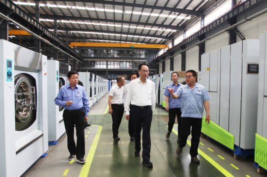 在陳宏董事長的陪同下,韓衛一行首先實地考察了海獅智能裝配車間,陳宏董事長就海獅智能工業自動化洗滌流水線的生產實力、生產工藝、售后服務等做了詳細介紹。